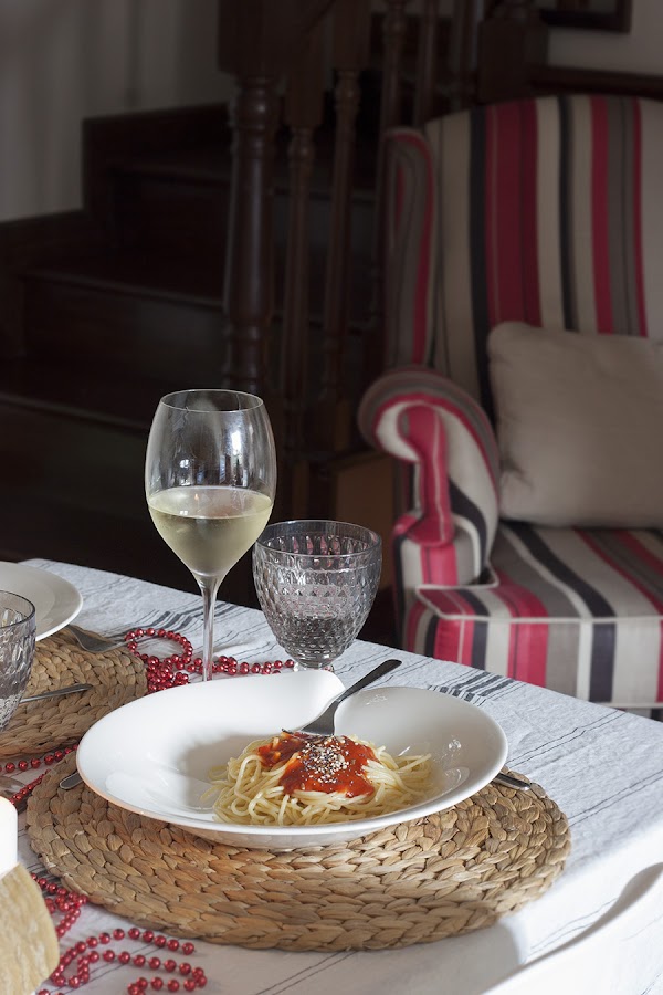 ¿Lo que más nos gusta? Esta vez hemos montado la mesa, pero gracias a la forma especial de este plato de espagueti, podemos disfrutar de la pasta en cualquier sitio, también cómodamente en el sofá, por ejemplo ¡Toma ya! ¡Y como les gusta eso a los peques! Aunque no os voy a engañar, al final aparecen espagueti por todas partes... jajajaja!