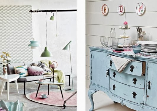 Esta gama de colores solo se la había destinado a la decoración de dormitorios o espacios infantiles, pero las tendencias cambian, y ahora nos encontramos propuestas ideales para salas de estar, cocinas, baños, dormitorios matrimonio, etc...