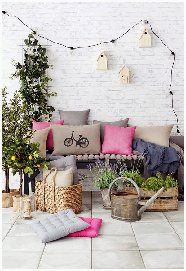Dependiendo de vuestros gustos podréis optar por colores más neutros o más cálidos en los accesorios; mullidos cojines, pufs, farolillos, espejos, velas, luminarias de bajo consumo (no hay que olvidarse de la iluminación)...