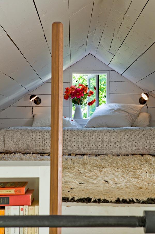 Esta pequeña casita de campo , no tiene grandes dimensiones pero no le falta de nada y resulta de lo mas acogedora.Se construyó en los años 40 y hace unos años fue restaurada completamente. Se utilizó madera reciclada en toda la casa pintándose de blanco por dentro y por fuera.El tejado viejo se sustituyo por musgo verde que hace de aislante y visualmente queda mas bonito o por lo menos diferente no?Me parece que esta llena de encanto.