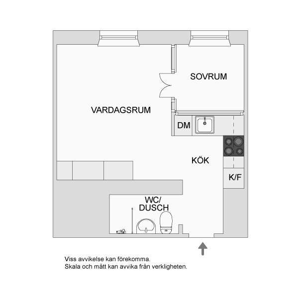 El vestidor está incorporado en el único espacio: Salón - comedor - cocina, ya no es que sea un espacio actual por utilizar este concepto, es que al tener tan pocos metros se aprovechan al máximo. En cambio el dormitorio y el cuarto de baño quedan independizados con separaciones reales.