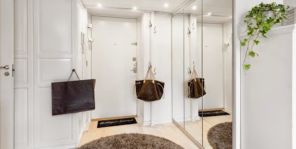 Una buena idea es poner espejos en el armario de la entrada (hacen más grande visualmente cualquier espacio), utilizar un sofá modular como pieza central en un tono claro o poner una cocina "importante" aunque la vivienda tenga pocos metros (le da ese carácter de casa "de verdad"). Os gusta?