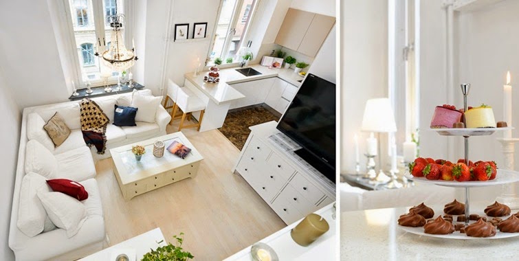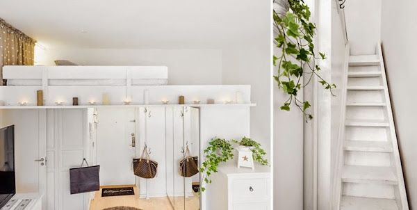 Buenos días de domingo! Últimamente hemos publicado varias viviendas de estilo nórdico y que cuentan con un altillo, donde sitúan la cama. La verdad es que una de las cosas que más nos gustan, es el hecho de que en menos de 35 m2 distribuyen todo lo necesario para vivir, y de la mejor manera posible. En estos pequeños apartamentos la esencia del estilo nórdico (originalidad, blanco por todas partes, sencillez...) brilla como en ninguna otra casa. Cuántas cosas son capaces de hacer con tan poco espacio, verdad?