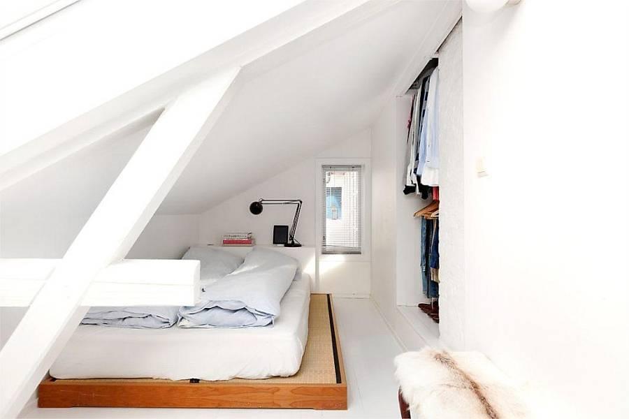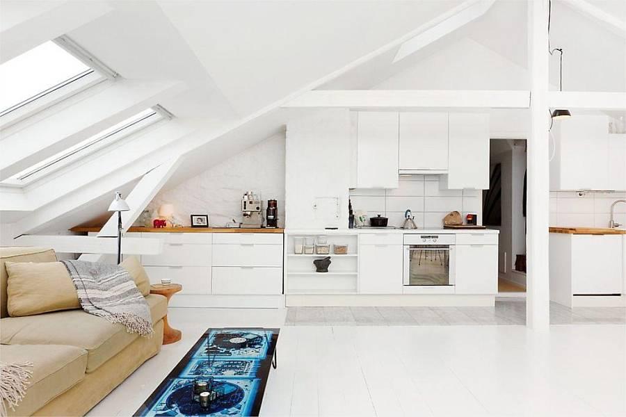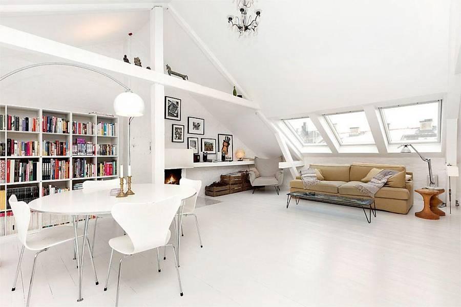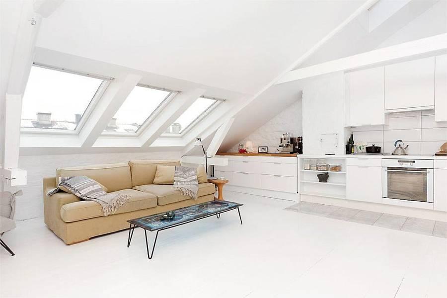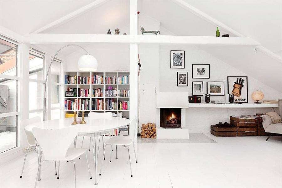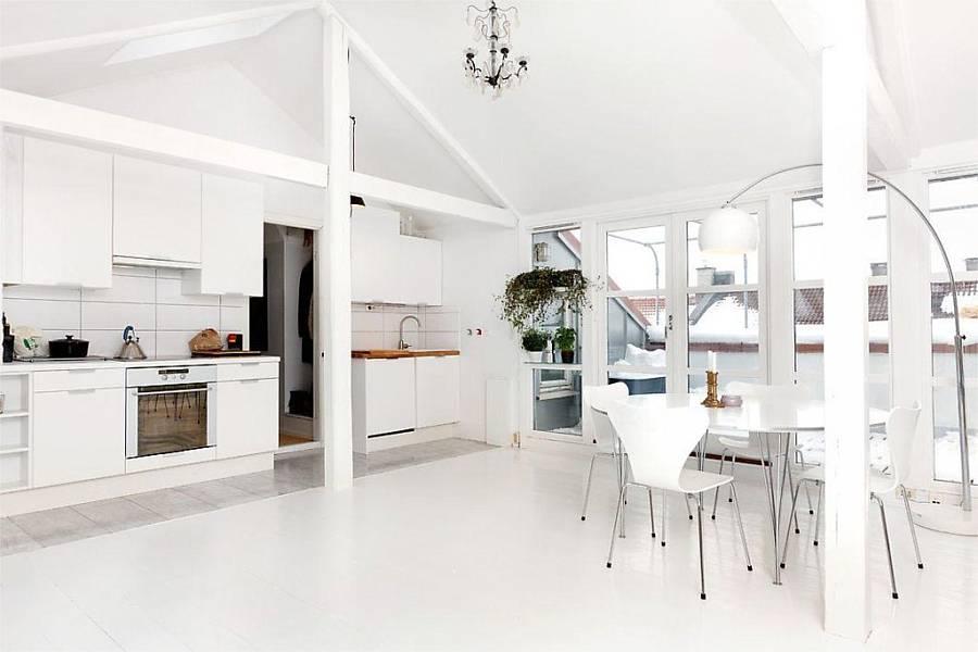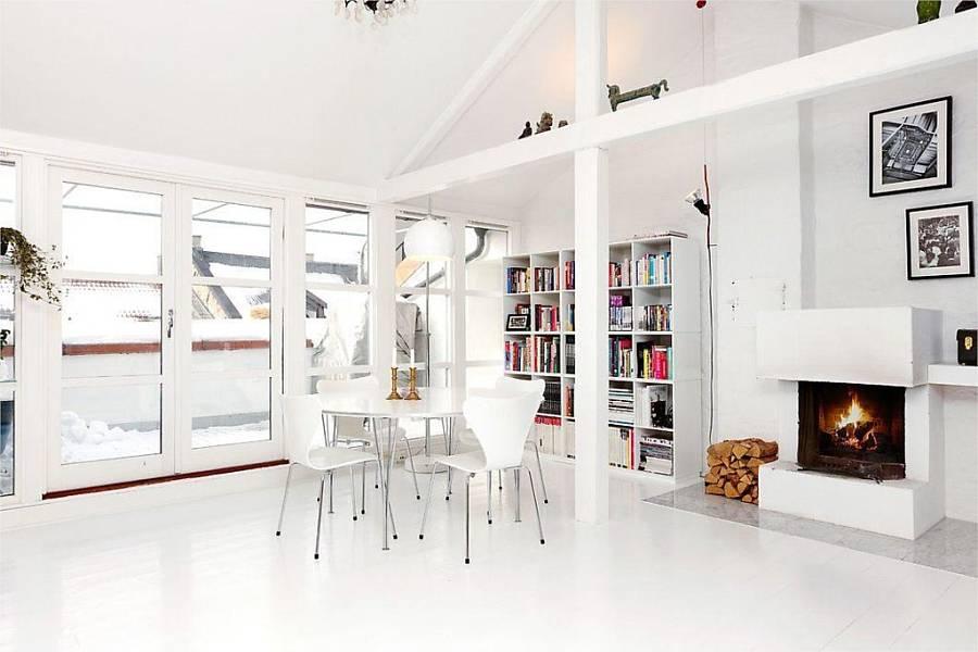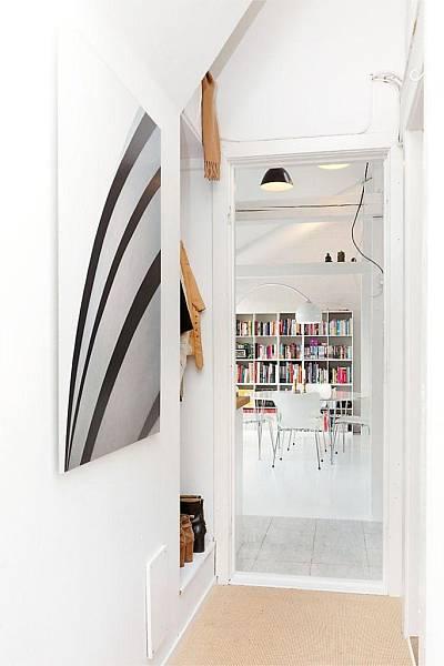 Este apartamento de solo 49 metros , se encuentra en Oslo y el gran espacio central , diáfano , blanco y escaso de muebles hace que la sensación de amplitud nos domine.