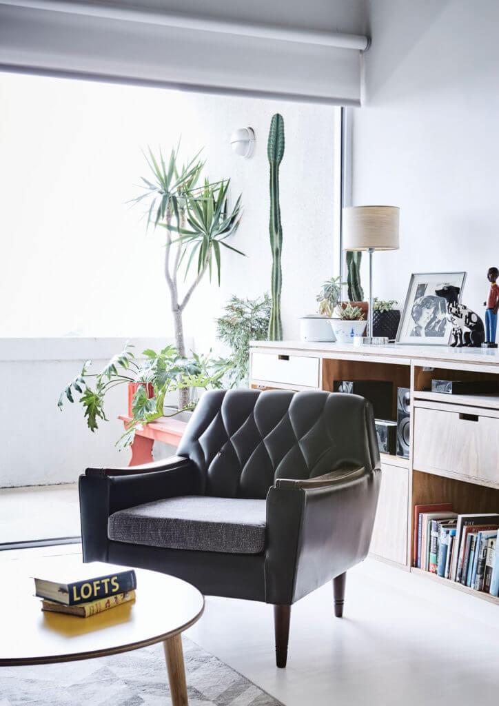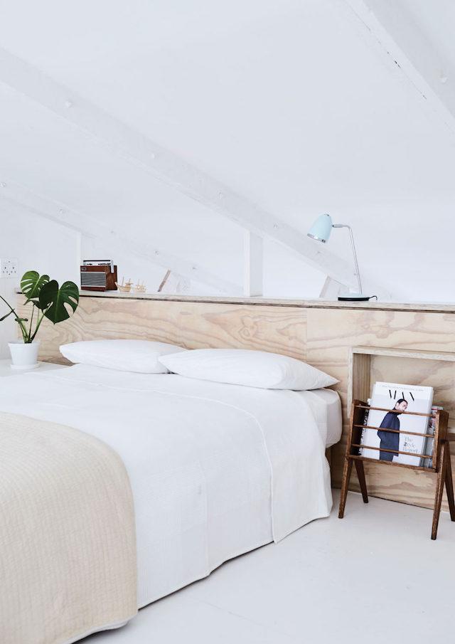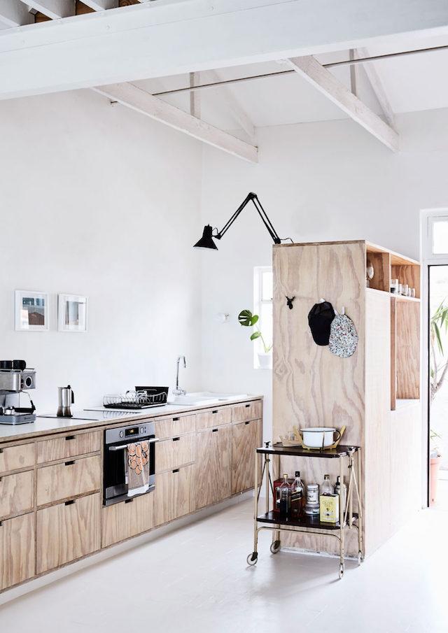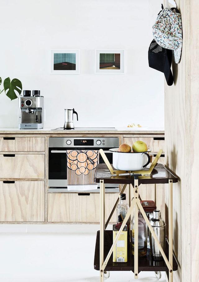 La madera de contrachapado tan impopular y que cualquiera intentaría evitar, en este hogar es el material protagonista. El uso de este tipo de madera en los principales muebles y como divisor ‘virtual’ de espacios, junto con el blanco que multiplica la luminosidad, aportan el gran diferencial de este pequeño piso.