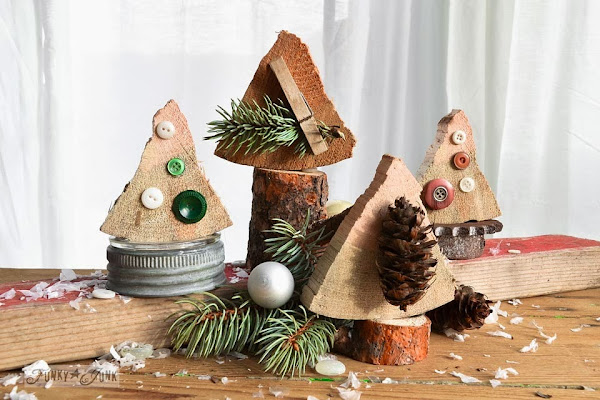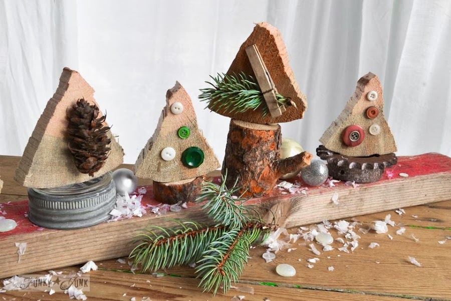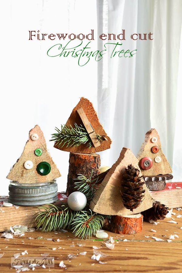 Si teneis leña en casa, podeis aprovechar unos trozos de esta para realizar unos pequeños aboles de Navidad, originales y divertidos.