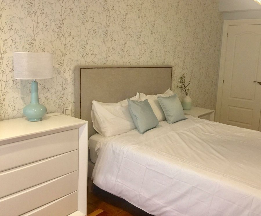 Pero un papel pintado, un cabecero tapizado y unos muebles lacados et...voilà! milagro conseguido.