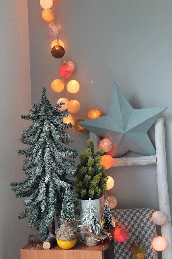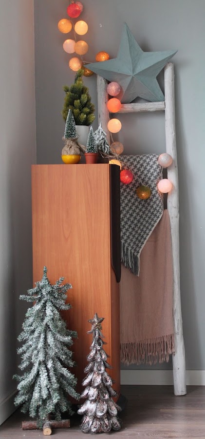 Este año la tendencia son los pinos en todos los tamaños, me compre unos cuantos y los integre a mi estilo decorativo, no son muy caros, puedes pagar por ellos no mas de 5;00