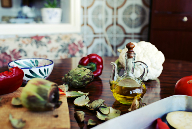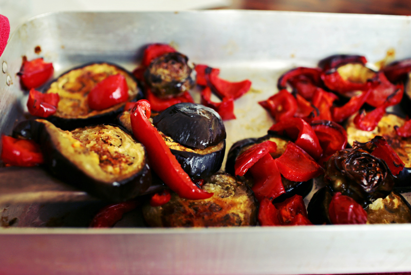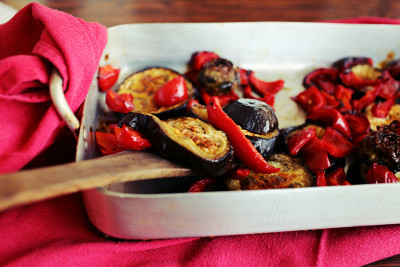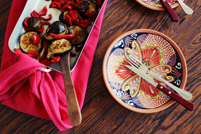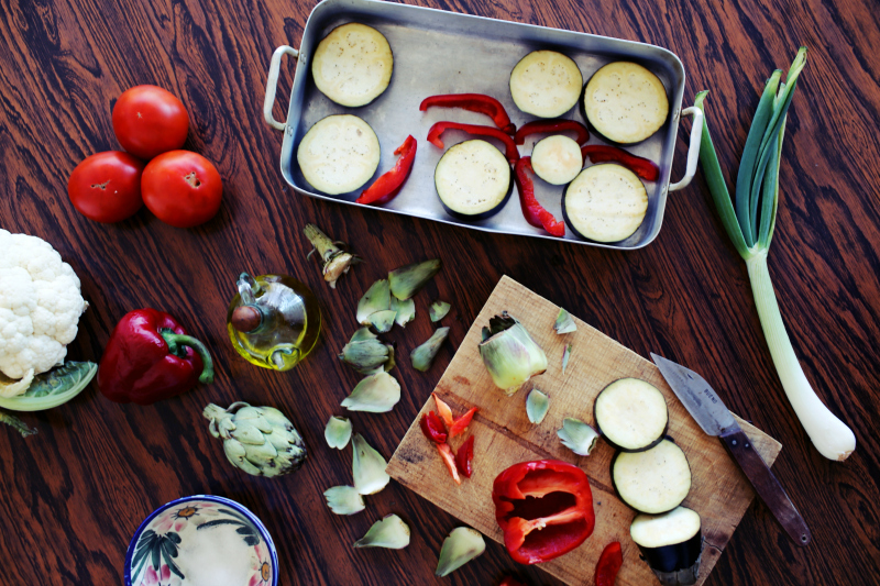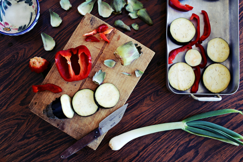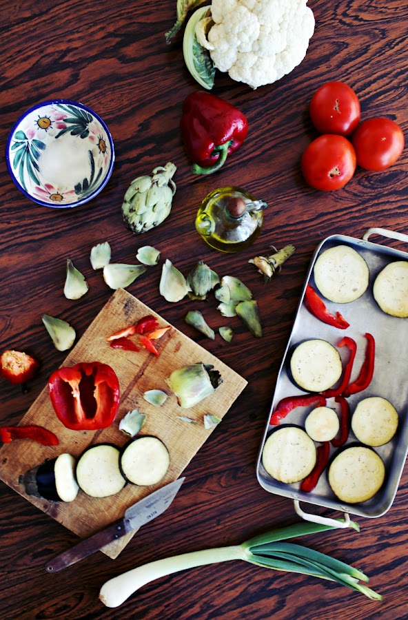 Las berenjenas, pimientos y alcachofas al horno con un poquito de sal,