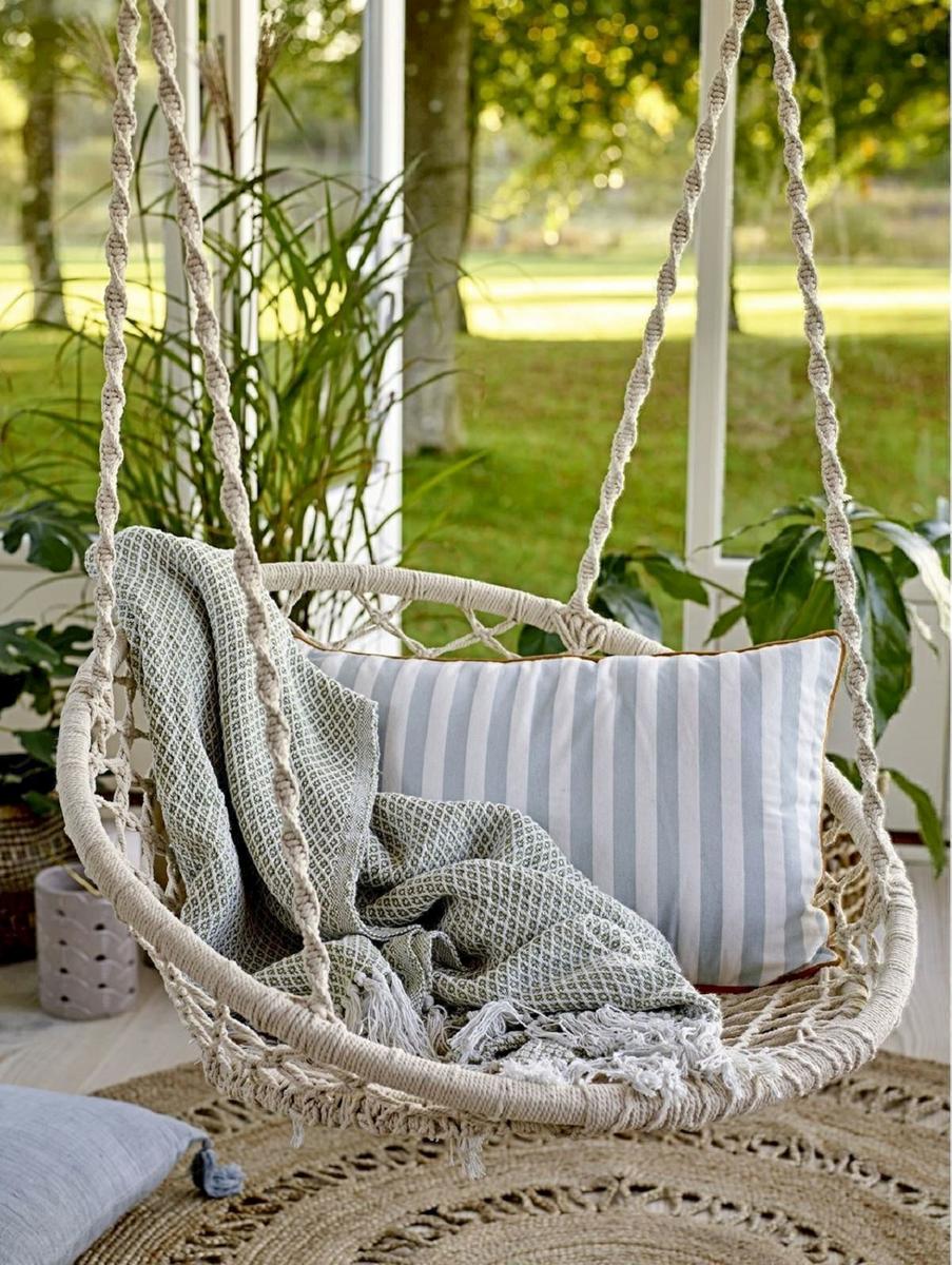 Con el buen tiempo nos gusta disfrutar de los espacios al aire libre. Las sillas colgantes son piezas claves para tener una terraza o jardín de los más “cool”. Poseen un encanto espacial y un gran impacto visual. Tienen el poder de dar un toque original y bohemio a la terraza.Puedes encontrar sillas colgantes de mimbre, ratán, materiales sintéticos Son una alternativa a la hamacas, ya que ocupan menos espacio y se puede colocar en cualquier rincón de la terraza.
