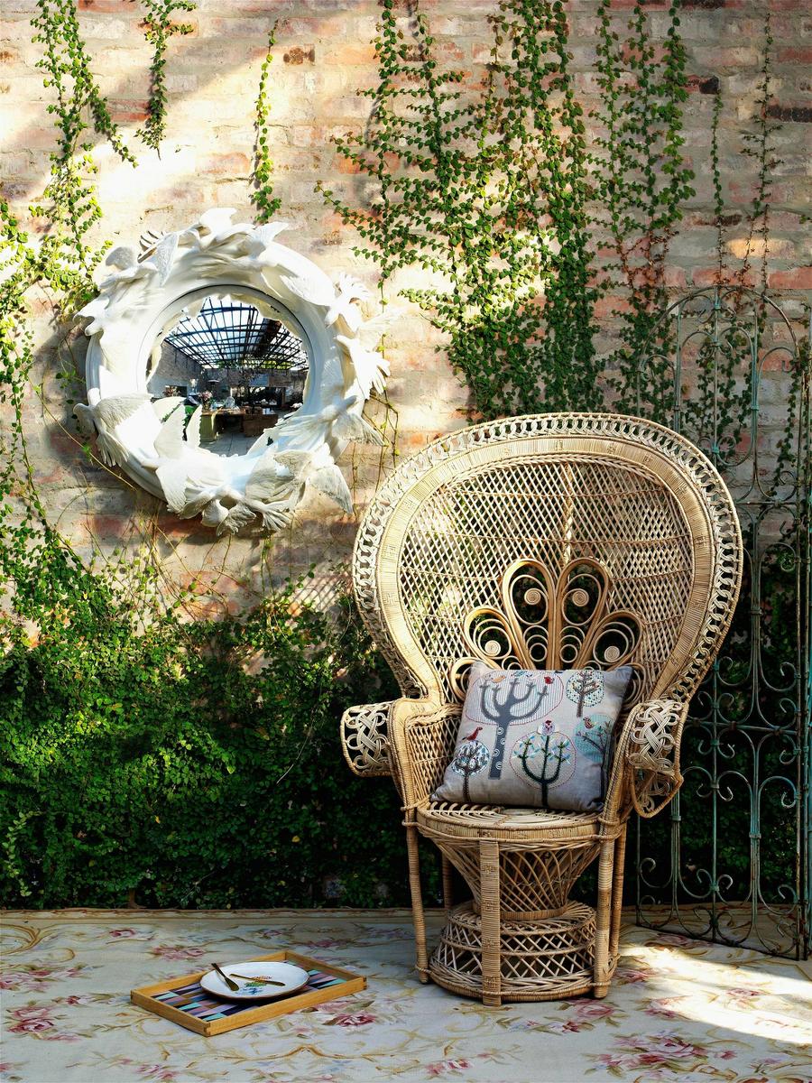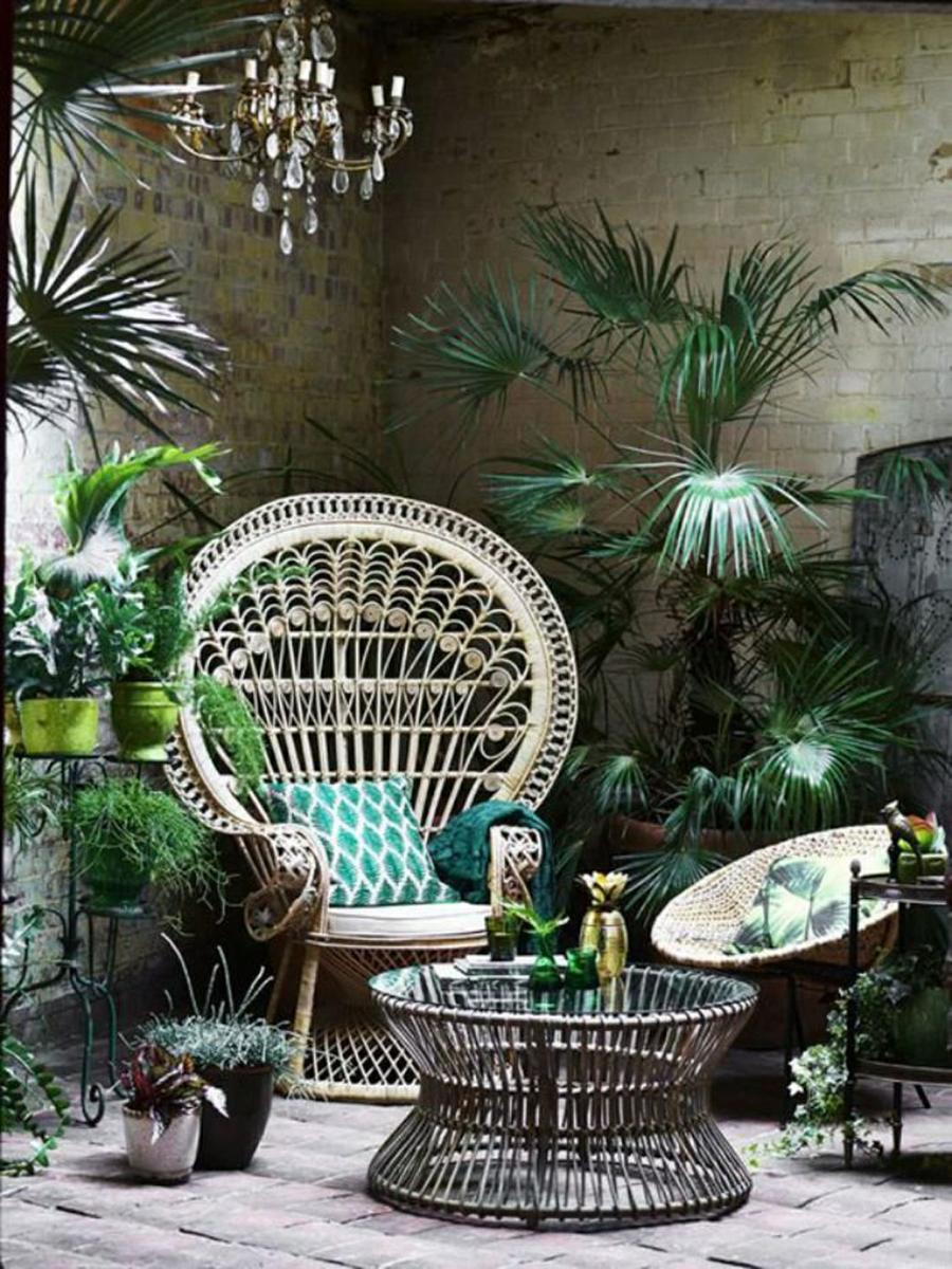 La silla Emmanuelle o silla Peaxcock (por su semejanza a un pavo real) ha vuelto con fuerza a la decoración de los espacios exteriores. Esta majestuosa silla realizada con fibras naturales se utilizaba como trono real en la Polinesia en el siglo XIX. Fue descubierto por los franceses que la introdujeron en la decoración de las casas de estilo colonial.Queda muy bien en cualquier ambiente, solo tendrás que buscar una zona que quieras resaltar para colocarla y que despliegue toda su majestuosidad.