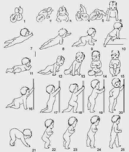 Si os fijáis en la cuadrícula, podréis ver el gran abanico de movimiento que tiene que realizar el niño hasta conseguir andar por sí mismo.