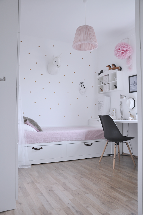 Tenía muchísimas ganas de enseñaros estas fotos, son pocas pero la idea me pareció fantástica para decorar la habitación de una niña que están en transición con las adolescencia, esa época en la que no encaja ni en un sitio ni en otro pero hay que ir preparando el terreno.