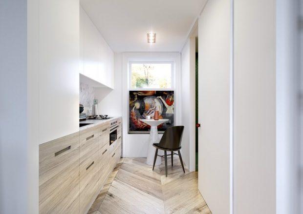 Hoy por eso, en ese concepto de diseñar el espacio, pero sin renunciar a lo arquitectónico y al riesgo, nos adentramos en este pequeño apartamento que denota minimalismo, modernidad y donde la visual se compone por el contraste horizontal de color intenso en la parte superior.