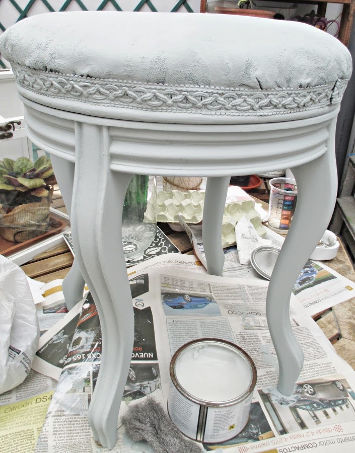 En un rinconcito de la trastienda de un viejo almacén hallé esta banquetita que me pareció preciosa.....