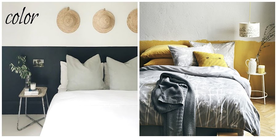 Si te atreves con un color fuerte o vibrante en las paredes, hay que combinar el color vivo - el negro o el amarillo - con otro tono más apagado - el gris- y con más colores neutros - blancos o naturales-, para no saturar la habitación. Le damos un toque de color con la pintura, alguna pincelada del mismo tono en algún cojín y con los detalles - cojines o sombreros - creamos un patrón de repetición.