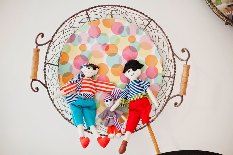 La habitación está decorada principalmente con muñecos de trapo y cojines.