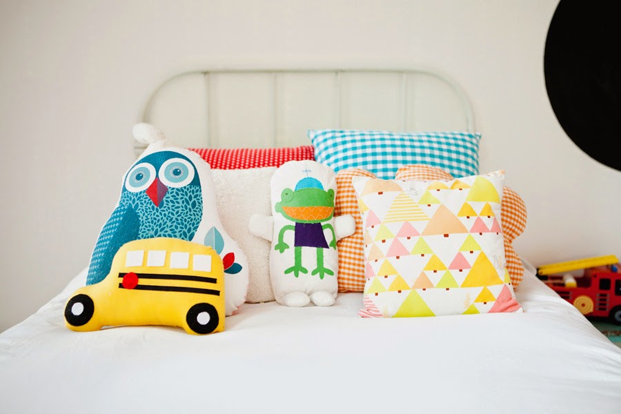 Sus cojines destacan por sus llamativos colores con animales y figuras geométricas...