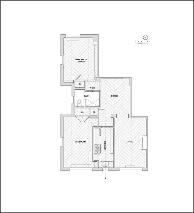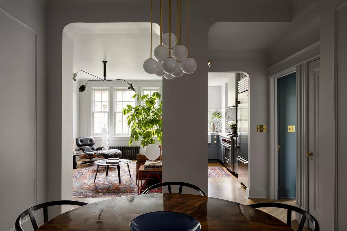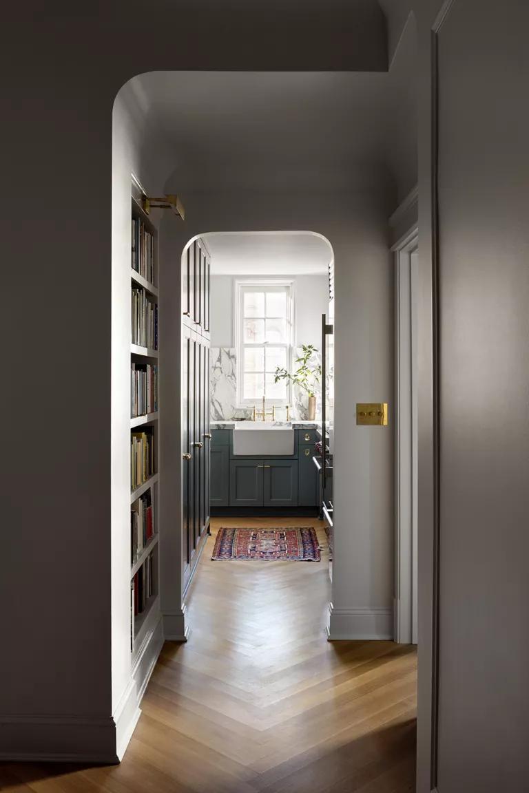 Este es el piso del arquitecto Nicholas Potts en Washington, D.C, conocido por sus proyectos elegantes, majestuosos e incluso opulentos. Sin embargo, para su propia vivienda de algo menos de 90 metros cuadrados, aunque sí podemos hablar de cierto lujo y elegancia, a mí lo que me ha conquistado es el partido que ha sabido sacar a cada uno de los espacios, dejando despejadas visualmente las zonas que quería resaltar (como la chimenea, que ha convertido en punto focal) y aprovechando aquellas otras a las que quería sacar funcionalidad, como las de paso para montar librerías.