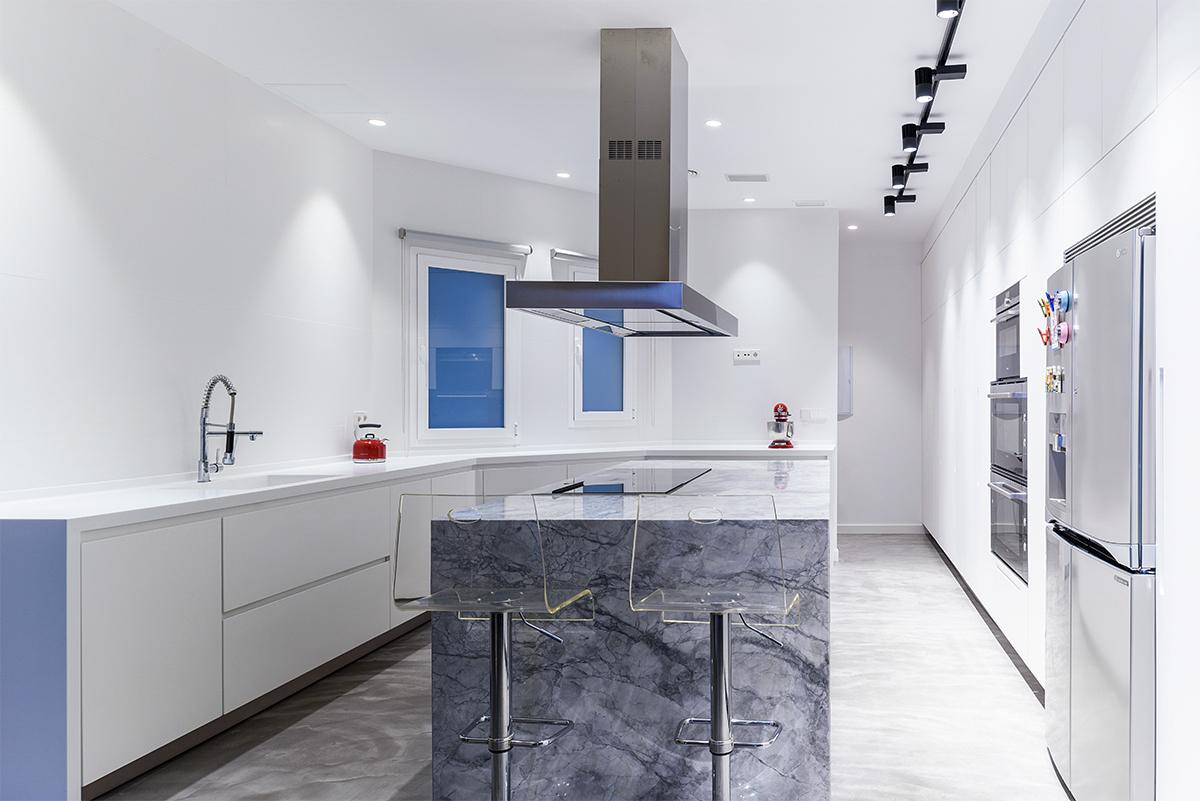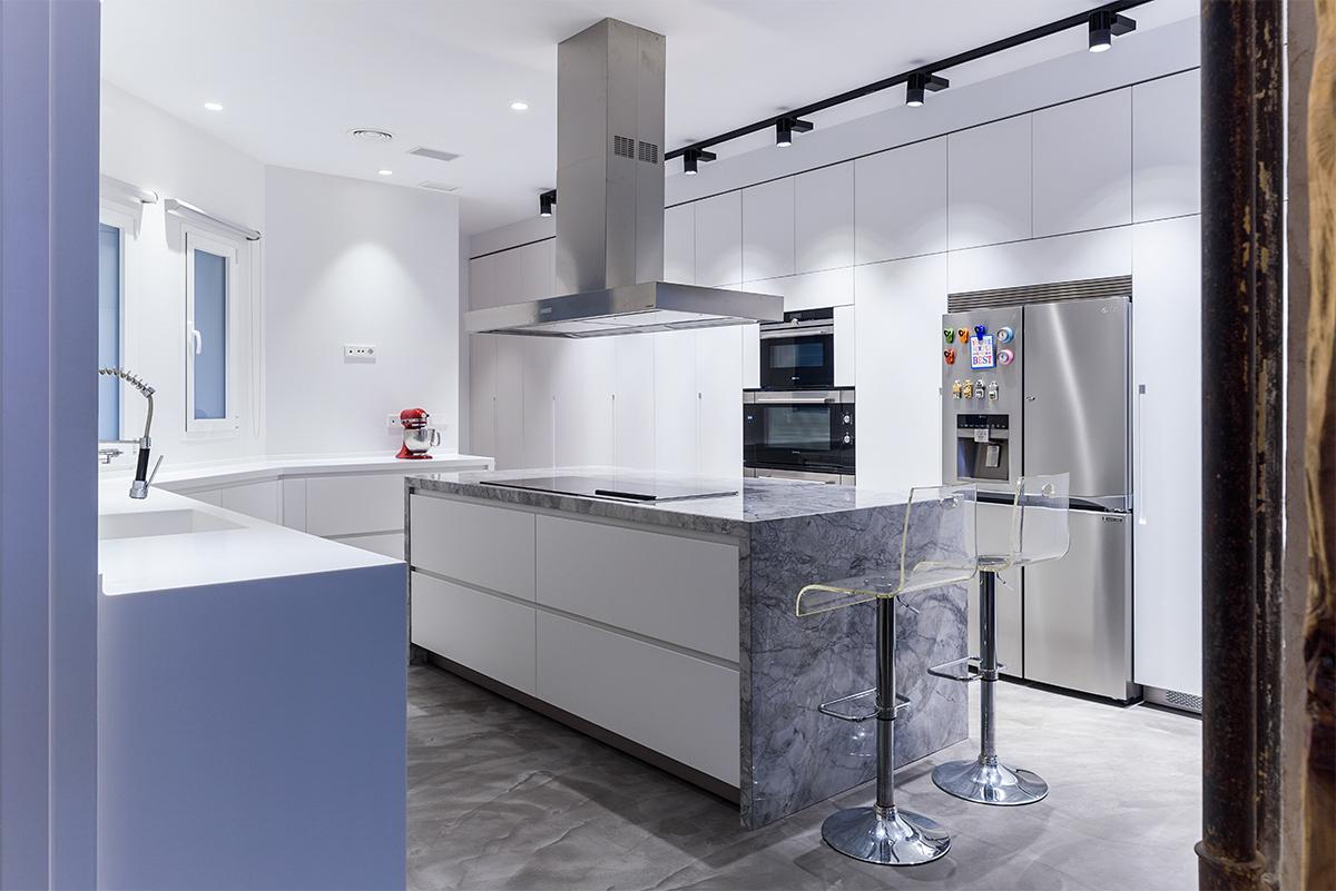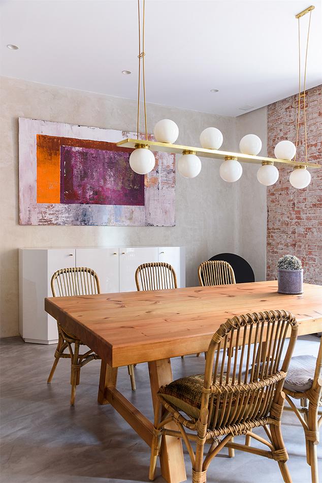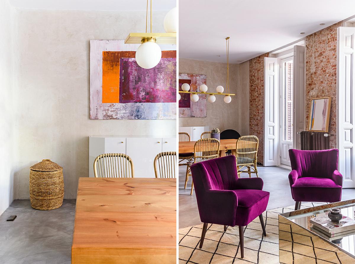 Texturas orgánicas en prácticamente todo el hogar, una paleta de colores atrevida y con personalidad y materiales que combinan vanguardia (acero, microcemento, mármol…) con tradición (madera, ladrillo, decapados…). Todos estos ingredientes, en su justa medida son el cóctel perfecto para lograr este piso ecléctico y acogedor.