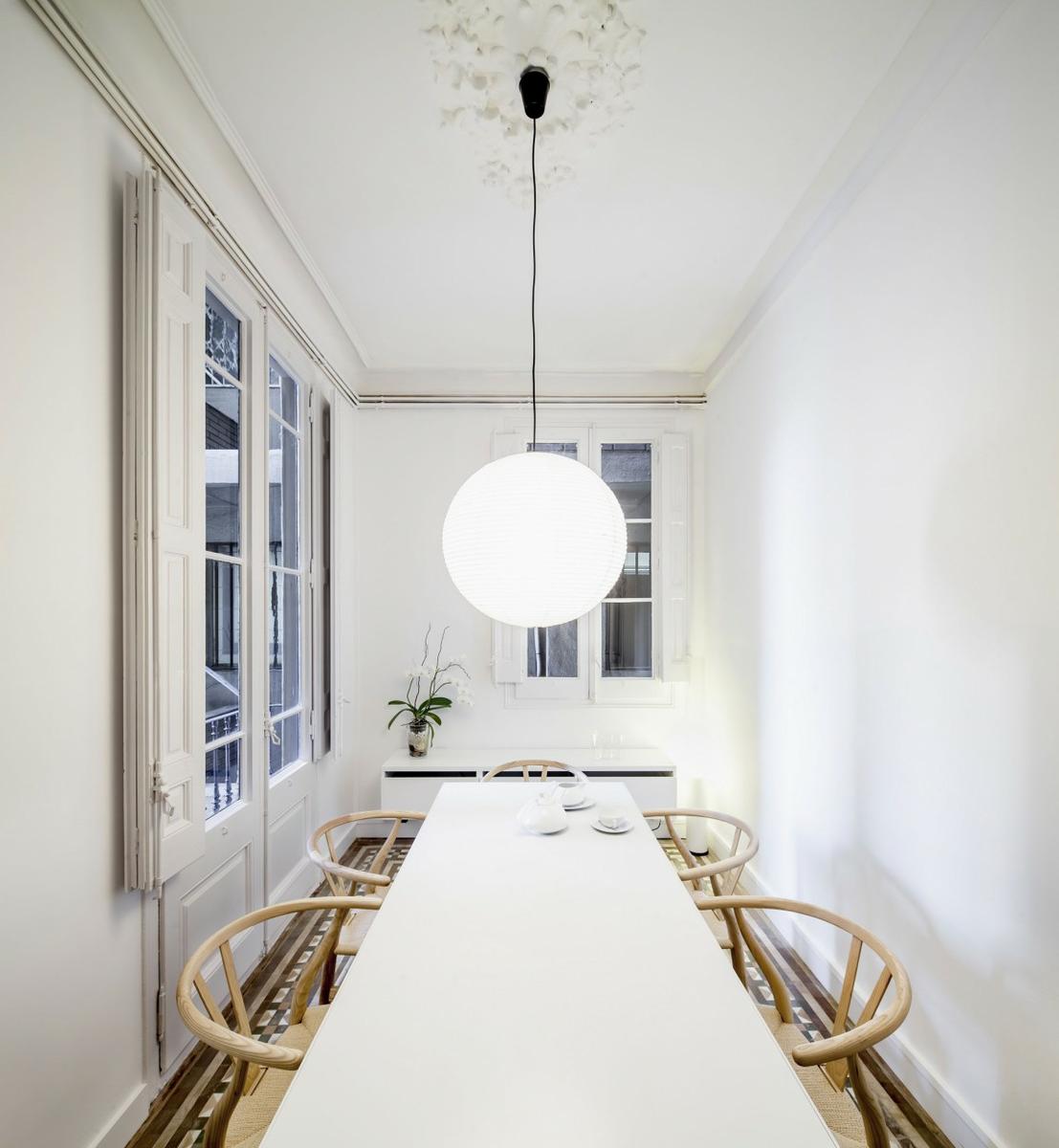 Con un suelo recuperado tan impresionante necesitamos una base blanca que le de protagonismo total y a su vez esta base blanca nos aporta una gran luz que en este piso sobra.