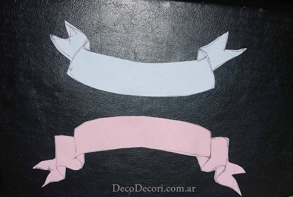 La idea era poner como títulos destacados, así que con un papel dibuje y corte los moldes para definir tamaño y posición en la pizarra. Con lápiz blanco sobre el bastidor marque las siluetas.