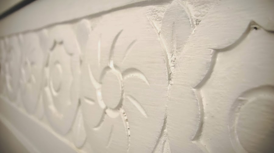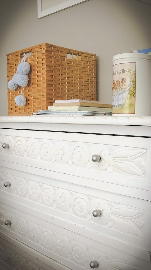 La cómoda fue heredada y la restauré pintándola de blanco y cambiándole los tiradores de los cajones.
