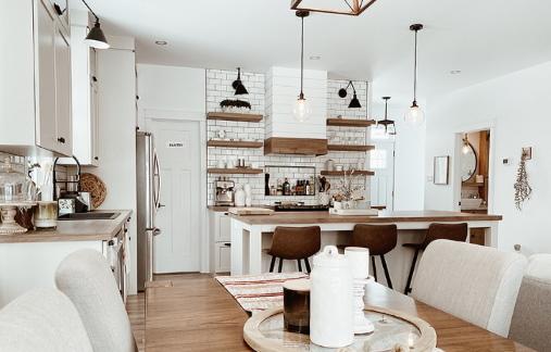 Avanzando por la casa nos encontramos en una maravillosa cocina, con una isla en el centro de la misma, con espacio para 4 comensales. La cocina cuenta con una amplia y práctica despensa (pantry) además de la gran cantidad de espacio que tiene de almacenamiento.