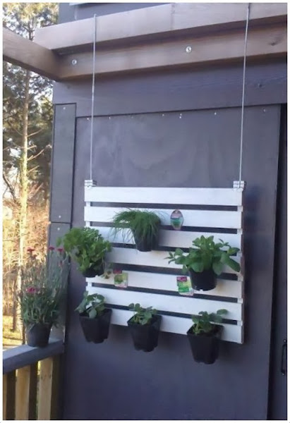 Estoy intentando cambiar el lavadero que tengo en casa por un minibalcón y tengo pensado en poner unas macetas en un palet al estilo Ikea o colgadas como en esta foto, cuando lo tenga listo lo colgaré.