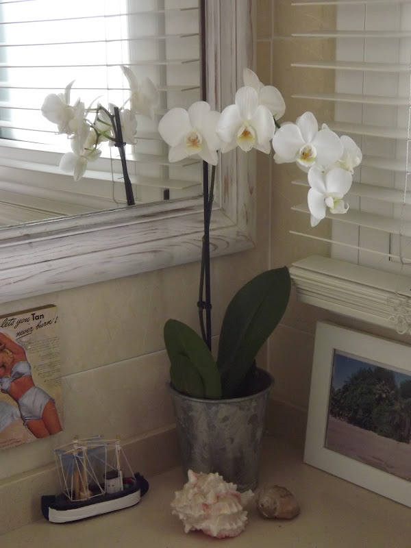 Hoy voy a alegrar con plantitas el cuarto de baño de Celia...una orquidea blanca y una planta verde...una combinación perfecta.Las coloco en dos maceteros de zinc de Jardiland,una tienda que me encanta,y solo me queda darles su sitio dentro del baño.La orquidea la coloco en la esquina del mueble de baño delante de la gran ventana,recibirá toda la luz que necesita para crecer y la plantita verde en la zona de la ducha,no importa que le caiga agua,le viene perfecta la humedad para desarrollarse...Y ya está, el lavabo parece otro,un par de plantas en bonitos maceteros bastan para dar alegría y color a una estancia de los hogares que a veces solemos descuidar...