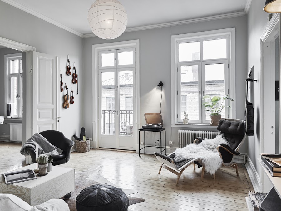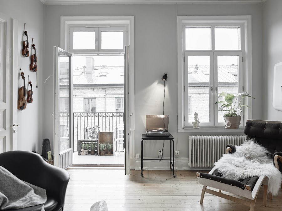 Como ejemplo de todo esto os mostramos una casa en la que se ha plasmado la pasión por la música de quien la habita sobre un entorno neutro y sencillo. Muchas veces esa es la clave, si quieres poner objetos muy llamativos utilizar fondos sencillos porque si no se verá vulgar y todo competirá en atención creando una estética de parque temático.