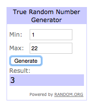 Lo que he hecho es sumarle a los 15 comentarios de blog (ya numerados) unos cuantos que habían en el facebook, en total 22 participantes, y ahora, ta-ta-tachan-tachaaaaan.