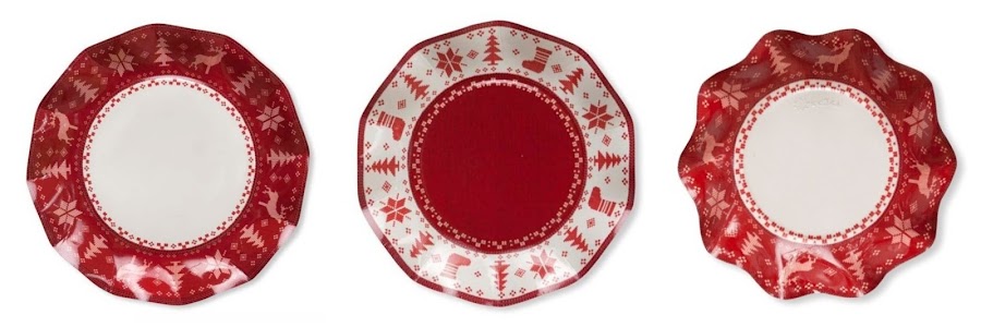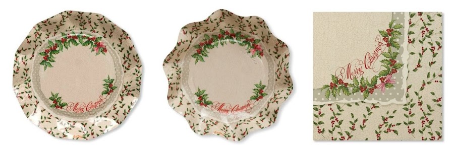 Platos para la mesa de Navidad Shabby Christmas, un modelo muy bonito en tonos beige, verdes y rojos ... un "modern-classic" con el que siempre se acierta.