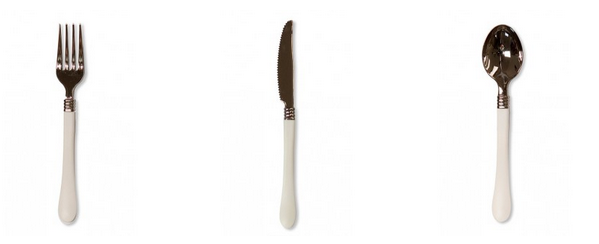 Para acompañar a los platos la preciosisima cubertería de plástico Luxury con el mango blanco ¡que no todos los días es Navidad!.