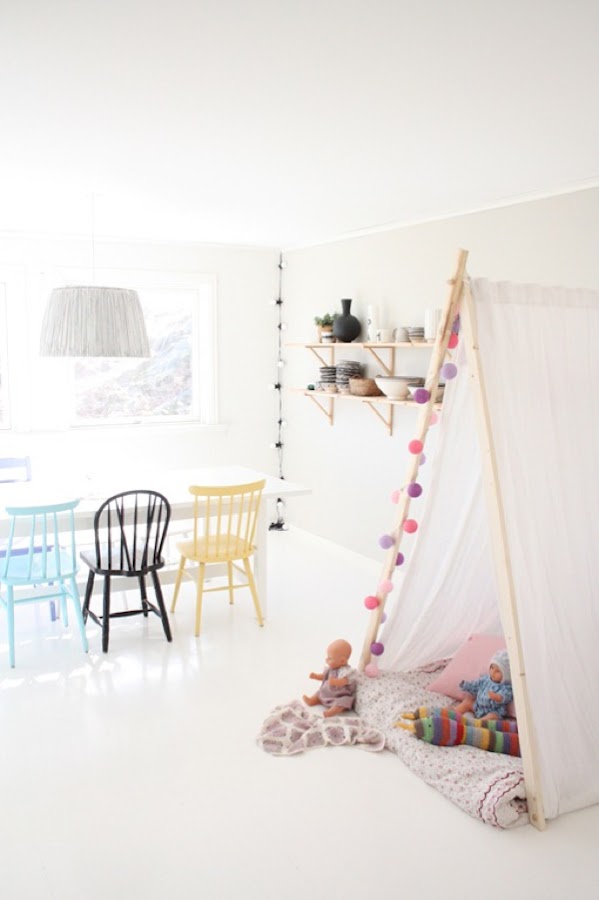 Parece que el estrés de la semana me hace divagar...con mucho sentido. Yo la verdad es que tengo antojo de tipi, cuanto más lo veo más me gustan. Un artilugio súper decorativo y muy muy importante divertidísimo para los más pequeños de la casa. Así que si yo no puedo tenerlo igual alguno de vosotros lectores, sí.