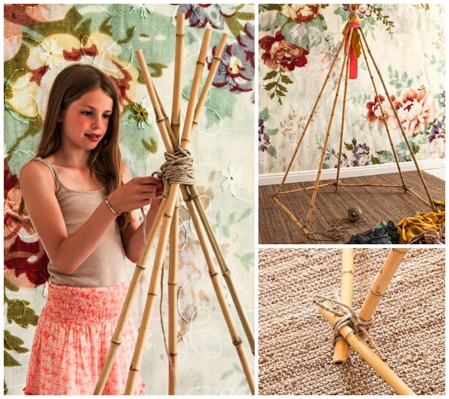 Si quieres algo especial para esa fiesta de cumpleaños o comunión de tus niños y te has cansado del castillo inflable etc.. ¡esta idea te va a encantar!. Con algunas cortinas o sabanas viejas les puedes hacer un precioso tipi indio para que puedan jugar con sus amiguitos.