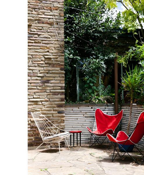 Lámpara de corcho de gran formato , que imprime mucha personalidad a la estancia , junto con las sillas butterfly y esa mesa de centro tan "diferente"....... hacen de esta casa en Californi ...