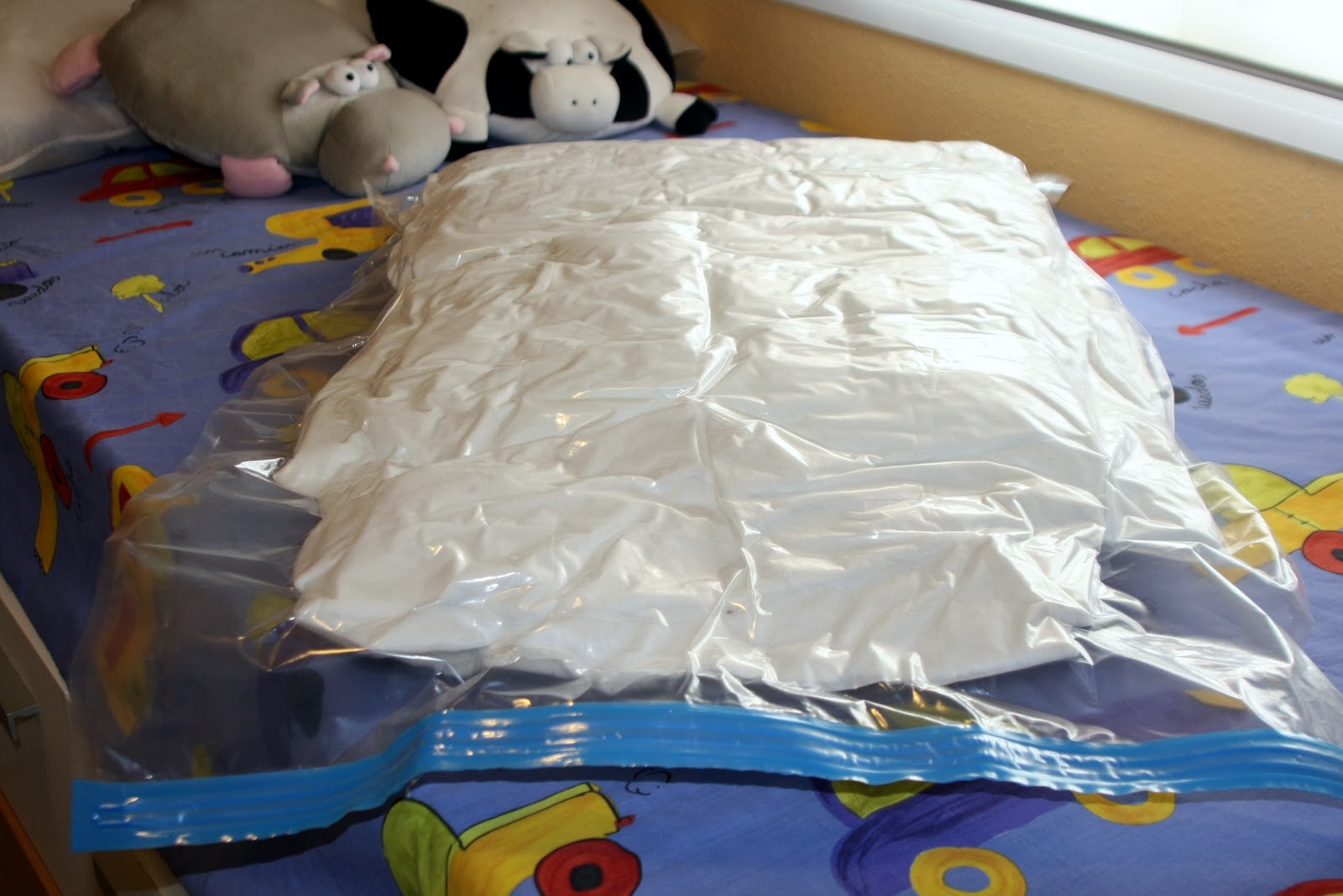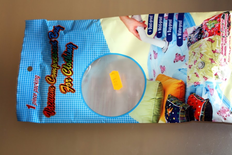 En primer lugar, lo primero que había que hacer era guardar la ropa de la temporada anterior. Para eso compré un una tienda de chinos bolsas para guardar al vacío la ropa. Por si no las conocéis, aquí os las presento: