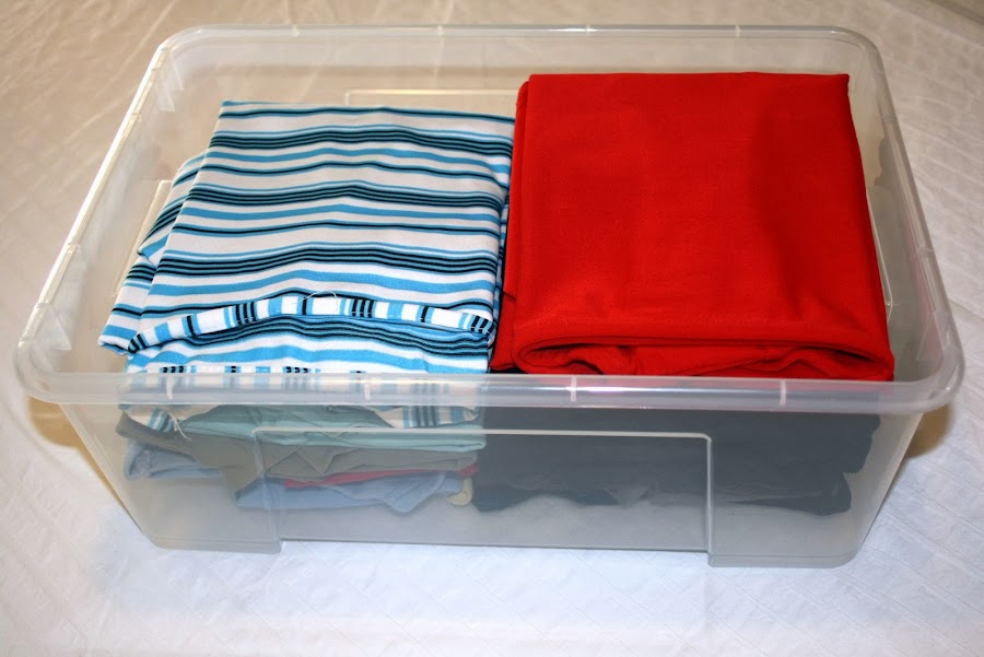 Para guardar las camisetas, compré en IKEA (como no podía ser menos) estas cajas SAMLA, que me venían perfectas, ya que con el tamaño del doblador grande encajan justo en la medida de la caja y para la medida del doblador pequeño, me permite formar dos montones dentro de la caja.