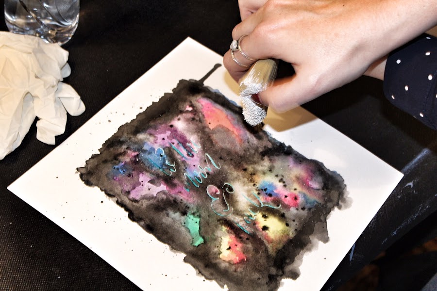 El jueves yo ya estaba en mi salsa, el taller no me pudo gustar más!! Lo Impartió Cocoloko nos enseño a hacer nuestros fondos de galaxias con mensajes para decorar nuestros marcos.