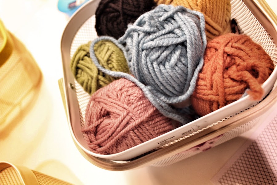 El primer taller impartido por Happy Projects Design consistía en decorar una cesta RISATORP, bordando dibujos con lanas, usando de base el mismo rejado de la cesta.