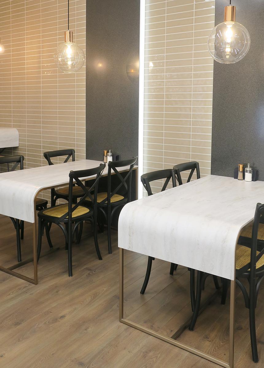 Una de las cosas que más me gustó es el parquet cerámico que parece de madera. Es un producto ecológico y muy resistente, tanto al uso como a la luz del sol, al fuego…