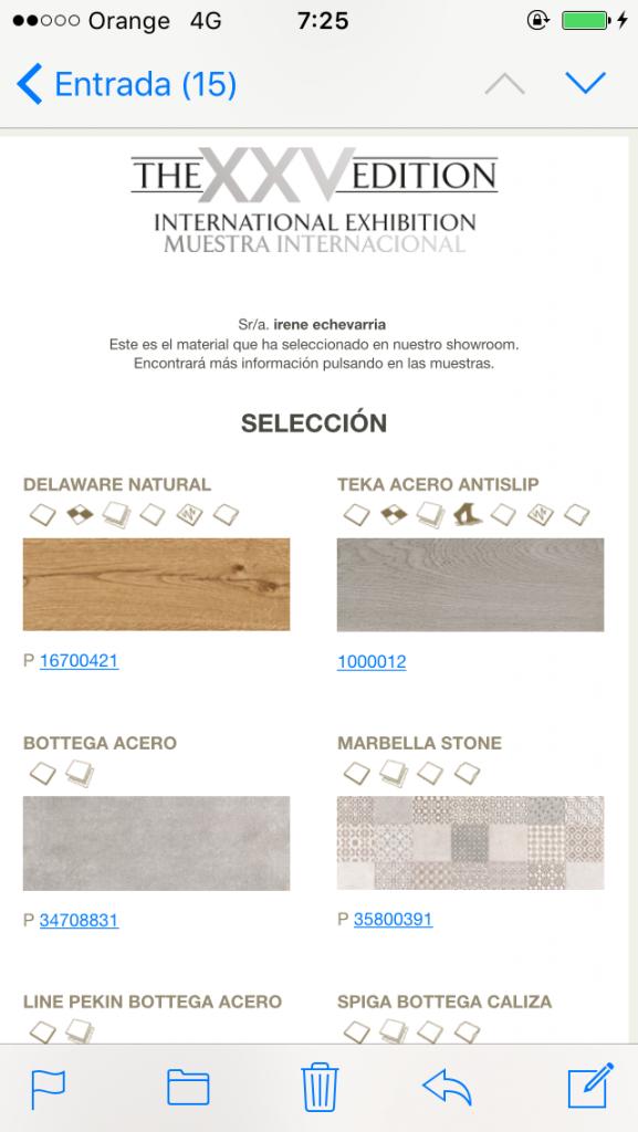 Para que te hagas una idea de lo que recibirías, este es el email que me envió ISA después de acercar mi pulsera a los materiales que más me gustaron de la exposición.