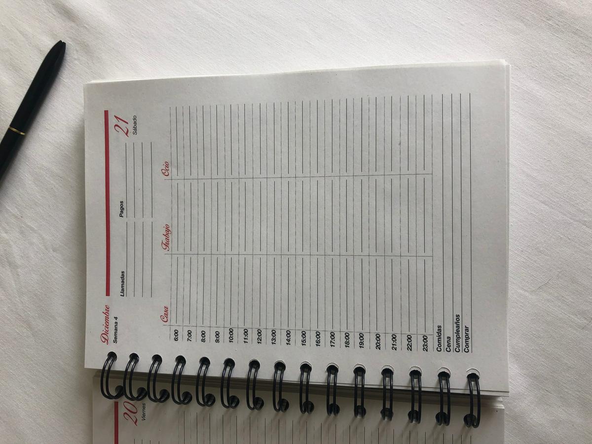 También me parecía importante poder anotar en algún sitio las llamadas, o los pagos que tenía que hacer cada día, además de lo que íbamos a comer o cenar y si había alguna compra especial que hacer, y eso tenia que estar integrado dentro de cada día y no en una libreta o apartado aparte, porque como con los armarios, visualizar de una sola vez todo lo que en ese día tengo que hacer me ayuda a organizarme más rápidamente.