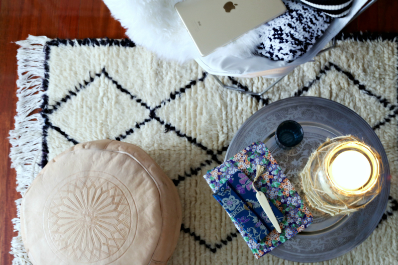 los conseguí por muy buen precio en Chaouen: 20€ el puf y 40€ la alfombra (100x150cms).