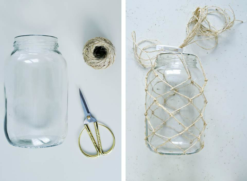 Nuestro tarro decorado con técnica macramé queda igual de bonito como