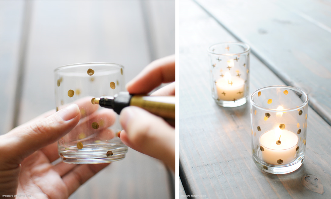 Seguimos con tutoriales de portavelas con cristal y detalles dorados, en esta ocasión Una pizca de hogar nos enseña como iluminar con puntos dorados la navidad en menos de 5 minutos.