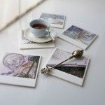 5. Por ultimo adherir a la superficie ya pintada y con fotografías una lámina de forro adhesivo del mismo tamaño que el cuadrado para que la superficie de la imagen se pueda mantener intacta al posar vasos en nuestros posavasos dye.