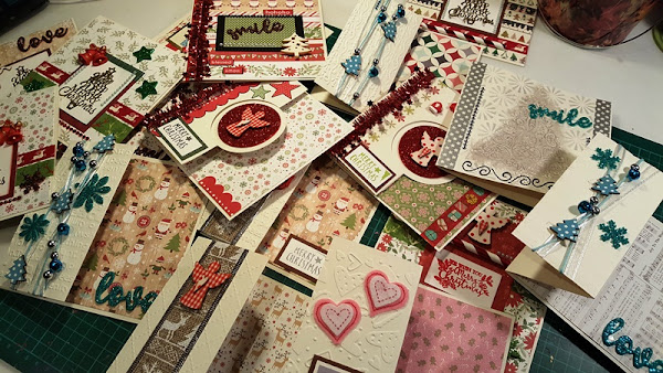 Ayer me puse en modo "postal" y no paré en todo el día!!! Papeles de Navidad kukis, adornos navideños y la purpurina que no falte...
