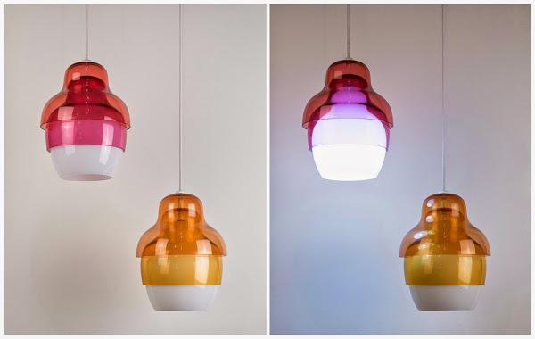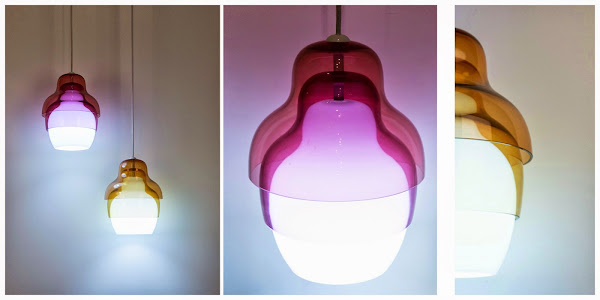 Tres pantallas inspiradas - en forma y organización - en las típicas muñecas rusas, conforman una lámpara de formas sencillas y limpias cuando está apagada, que se transforman en sugerentes posibilidades de iluminación cuando se enciende y despliega todos sus matices.